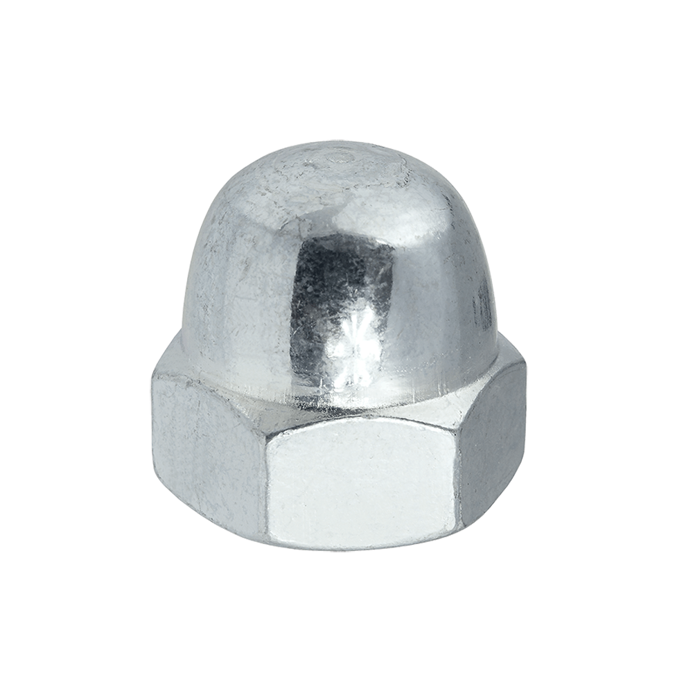 Acorn nuts are fasteners cooperating with metric screws. Made of zinc-plated low carbon steel.