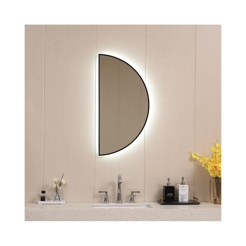 Mirror 45x90CM with matte black aluminum frame, back LED lighting, and horizontal/vertical installation. Distance from Wall: 31mm