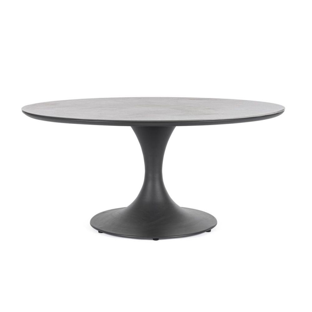 STRUCTURE IN POWDER-COATED ALUMINIUM (POLYESTER). TOP IN SINTERED STONE (NATURAL STONE WORKED AT HIGH TEMPERATURES)(THICKNESS 11MM). STAINLESS STEEL SCREWS. ADJUSTABLE FEET. BASE WITH STEEL BALLAST TO BE ASSEMBLED.