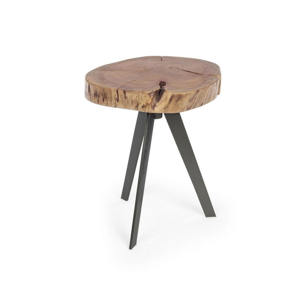 TOP IN ACACIA WOOD (ORIGINAL SECTIONS OF LOG), STEEL LEGS EPOXY POWDER COATED. POLYURETHANE PAINT FINISHING. THE SHAPES AND SIZES FORMED BY THE WOOD ARE ONLY INDICATIVE, ALL THE ITEMS WILL BE DIFFERENT FROM EACH OTHER.
