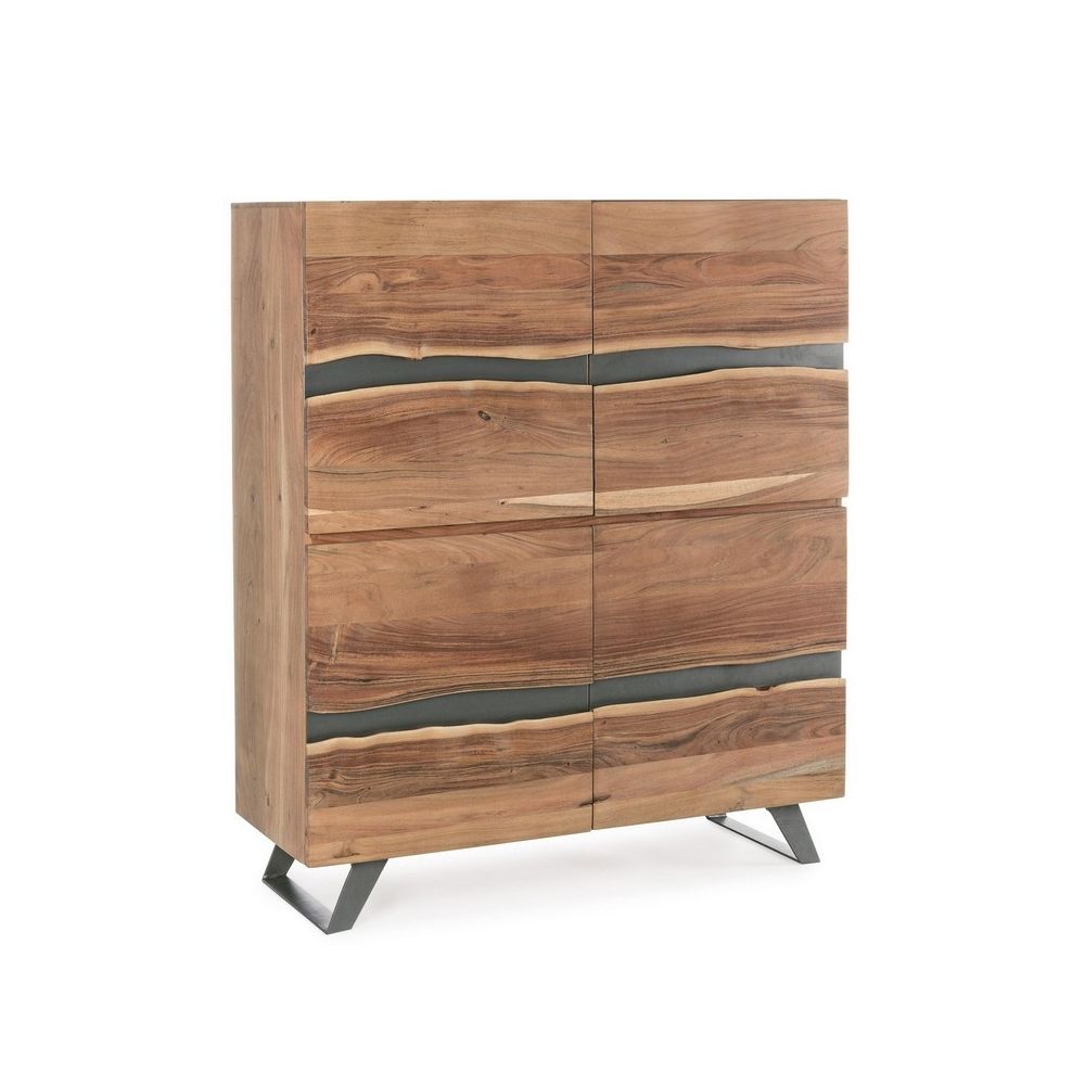 FRAME IN ACACIA WOOD, STEEL LEGS EPOXY POWDER COATED. DOORS WITH METAL INSERTS. POLYURETHANE PAINT FINISHING. DOOR COMPARTMENT INCLUDING SHELF. LEGS TO BE ASSEMBLED.