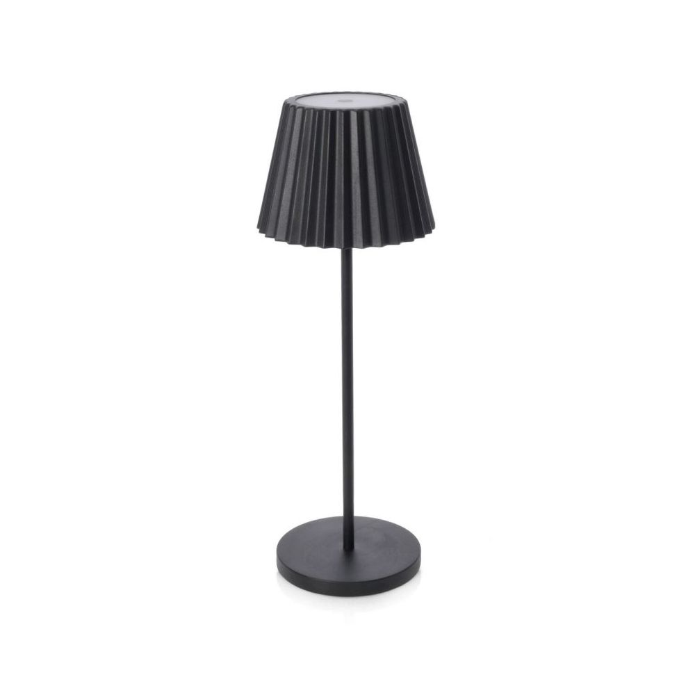 EPOXY POWDER COATED METAL, PLASTIC. WARM LIGHT LED LAMP, RECHARGEABLE BATTERY WITH WHITE PLASTIC CHARGING BASE AND 0.8 M WHITE USB CABLE INCLUDED. ON/OFF TOUCH BUTTON. FOR INDOOR AND OUTDOOR USE, IP54.