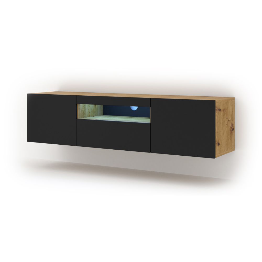 TV stand AURA 150 standing/hanging, artisan oak/black mat, LED