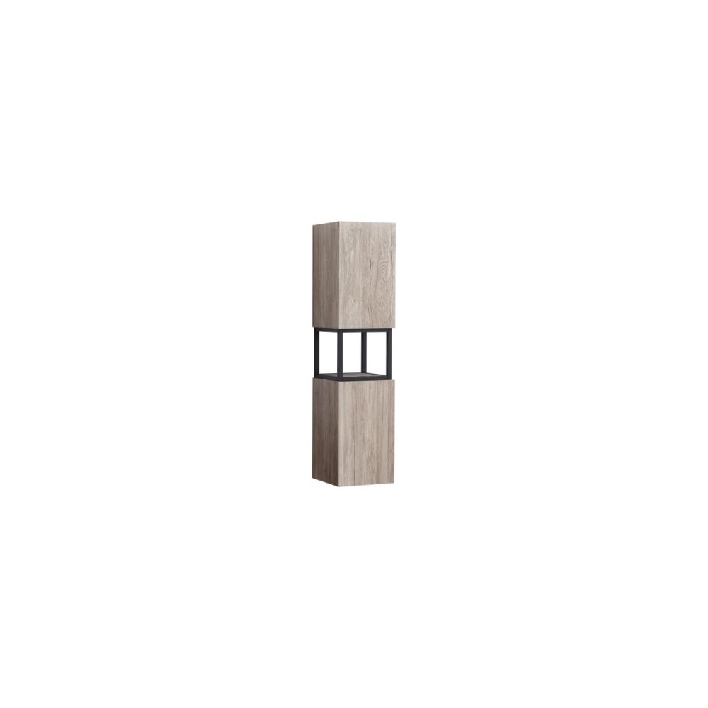 The KALITEA ICP 3030125-020 bathroom column cabinet features two doors, a reversible design, and built-in LED lighting (IP44). Made from PVC with melamine coating and a powder-coated black metal frame. Includes two internal shelves and soft-close hinges. Delivered fully assembled. Dimensions: 30x125x30 cm.