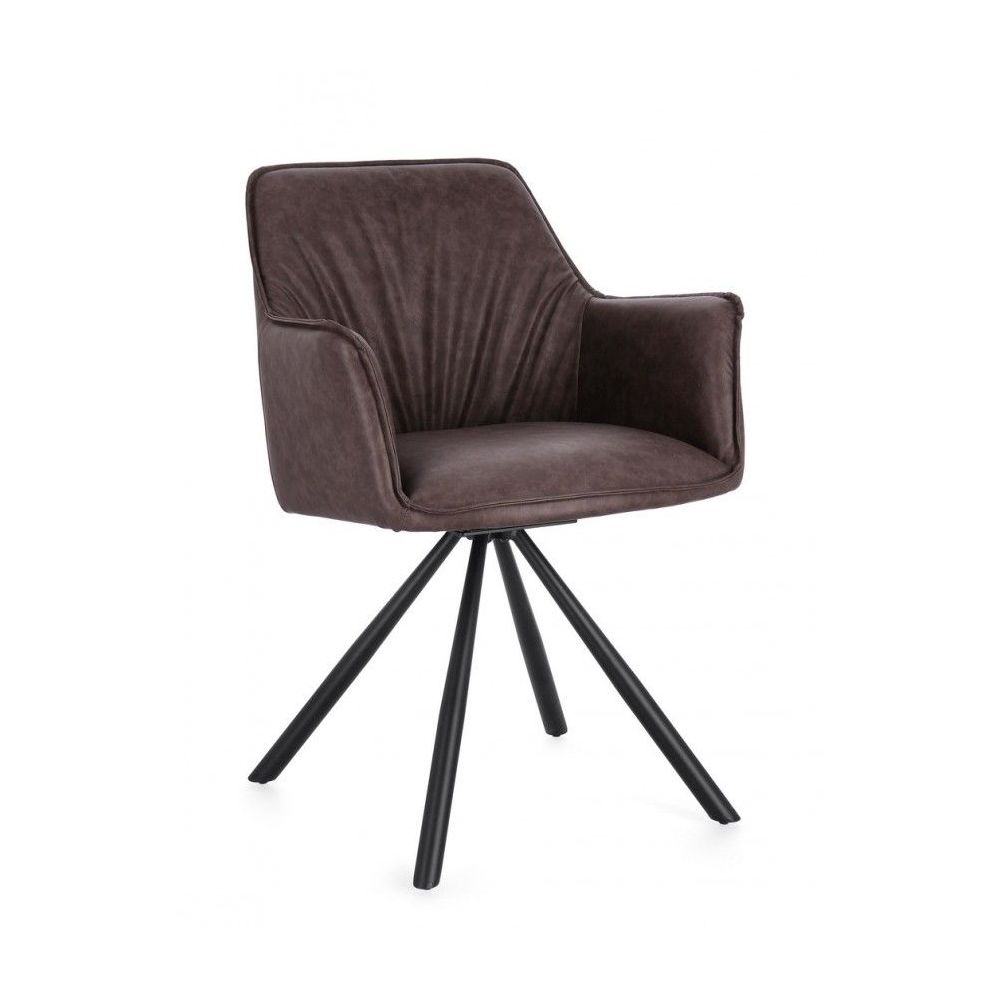 SWIVEL SEAT IN PLYWOOD 180° WITH RETURN MECHANISM. STRUCTURE AND LEGS IN STAINLESS STEEL. FILLING IN POLYURETHANE FOAM, DENSITY: SEAT 23KG/M2 BACK 22KG/M2. IMITATION LEATHER COVER. LEGS TO BE ASSEMBLED