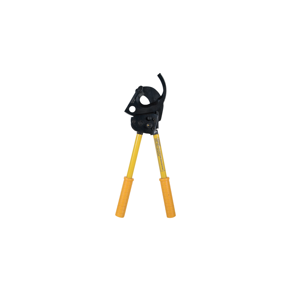 Mechanical cable cutting pliers CC-400 type, designed for cutting aluminum and copper conductors, including those with a metal bearing core. Featuring 15T cutting power, a ratchet mechanism, and a brake for enhanced precision and safety. Suitable for cables up to 400mm² (aluminum) and 350mm² (copper).