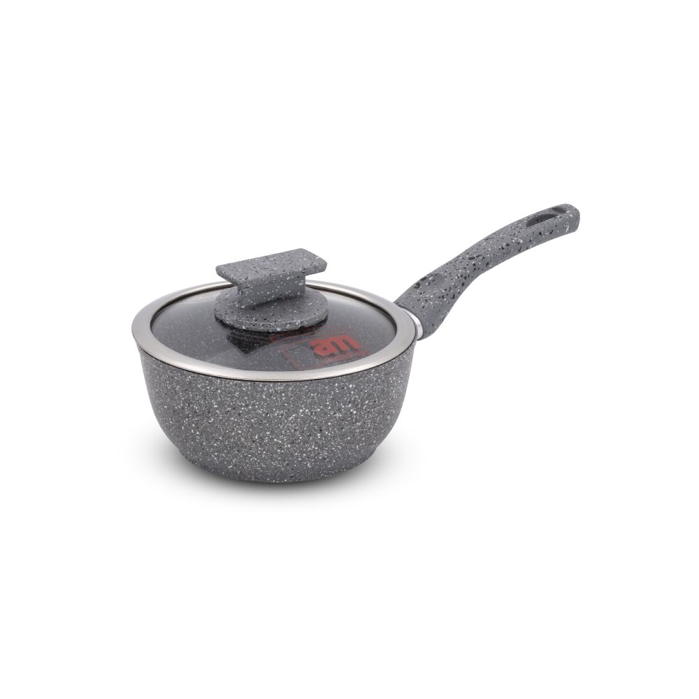 The AM Mineral Stone stone-effect coating, with natural mineral microparticles and ceramic reinforcements, guarantees long-lasting non-stick properties, wear resistance, and healthier, fat-free cooking.
