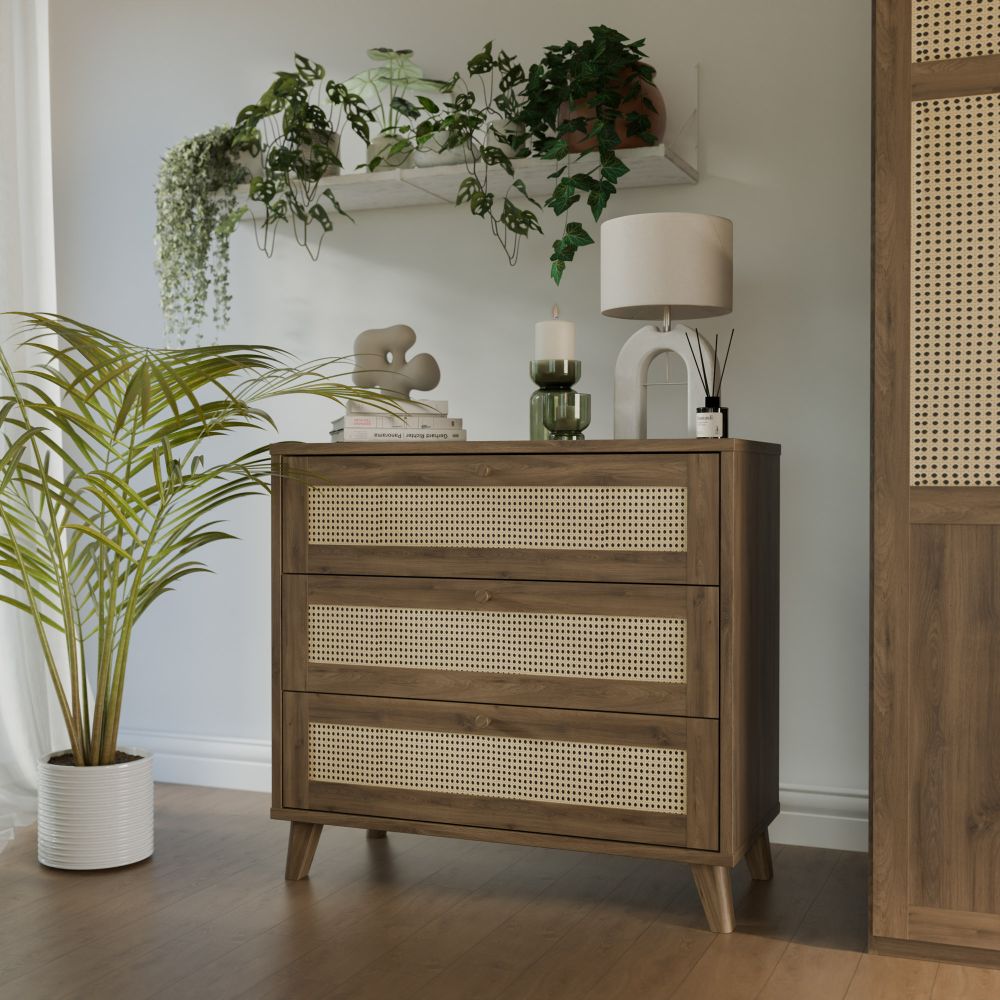 Chest NINE with 3 drawers 90 cm, Valencia oak