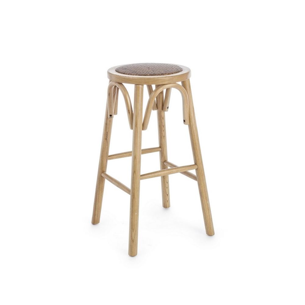 ELM WOOD FRAME. PADDED SEAT COVERED IN NATURAL RATTAN, POLYURETHANE FINISH. PACKING WITHOUT CARTON BOX.