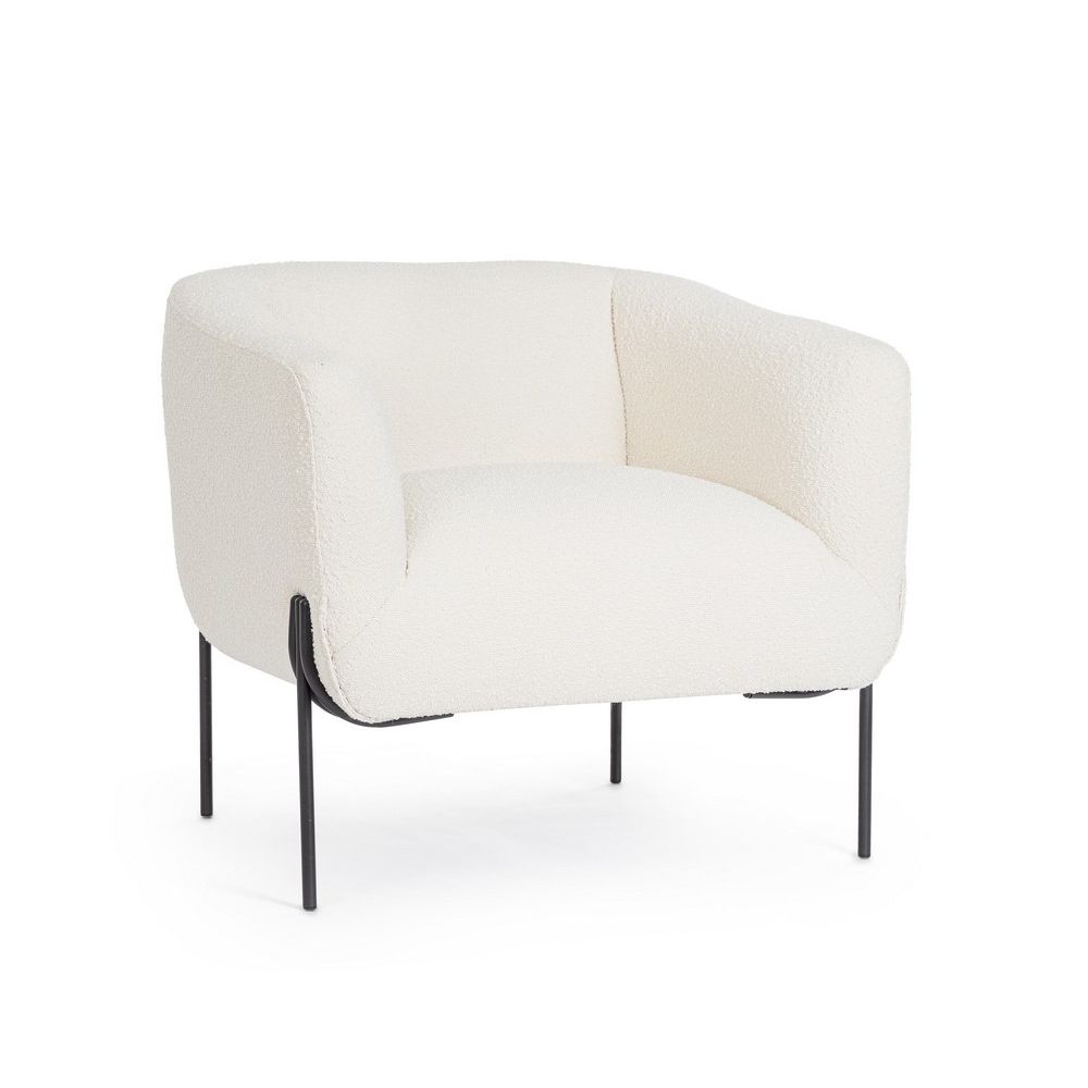 PLYWOOD FRAME, STEEL LEGS EPOXY POWDER COATED. COVERING IN POLYESTER BOUCLE' EFFECT. FOAM DENSITY SEAT 28KG/M3 BACK 20KG/M3. NON-REMOVABLE. LEGS TO BE ASSEMBLED.