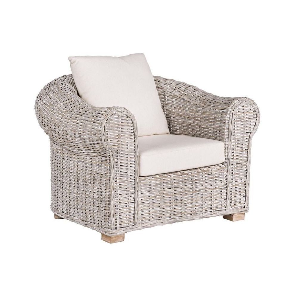 RATTAN FRAME, KUBU WEAVING, NITROCELLULOSE PAINT FINISHING. MANGO WOOD FEET. CUSHIONS WITH REMOVABLE COVER FOR INDOOR USE (LINEN). PLEASE DO NOT EXPOSE THE FURNITURE TO DIRECT SUNLIGHT AND BAD WEATHER. PACKING WITHOUT CARTON BOX.