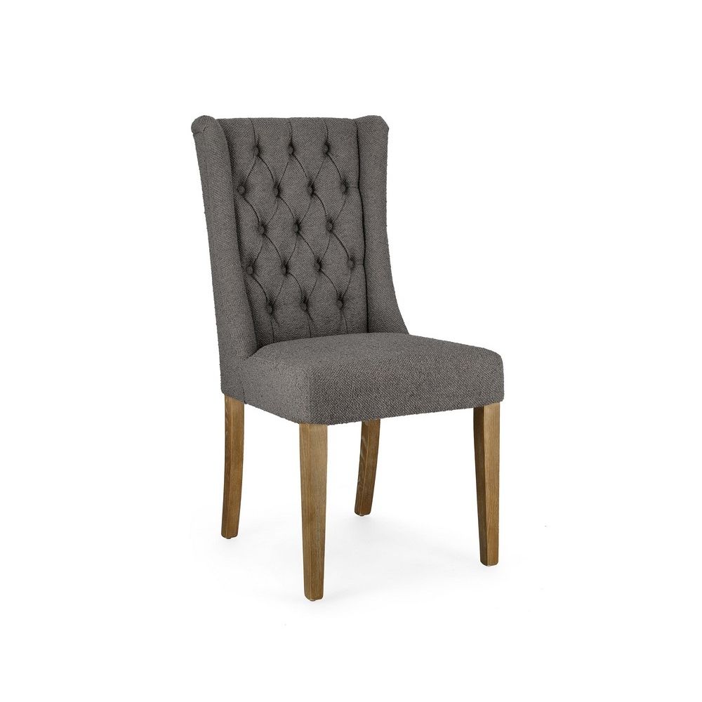 OAK WOOD FRAME. COVERING IN POLYESTER WITH BOUCLE' EFFECT. POLYURETHANE FOAM PADDING DENSITY SEAT 30KG/M3, QUILTED BACKREST 25KG/M3.
