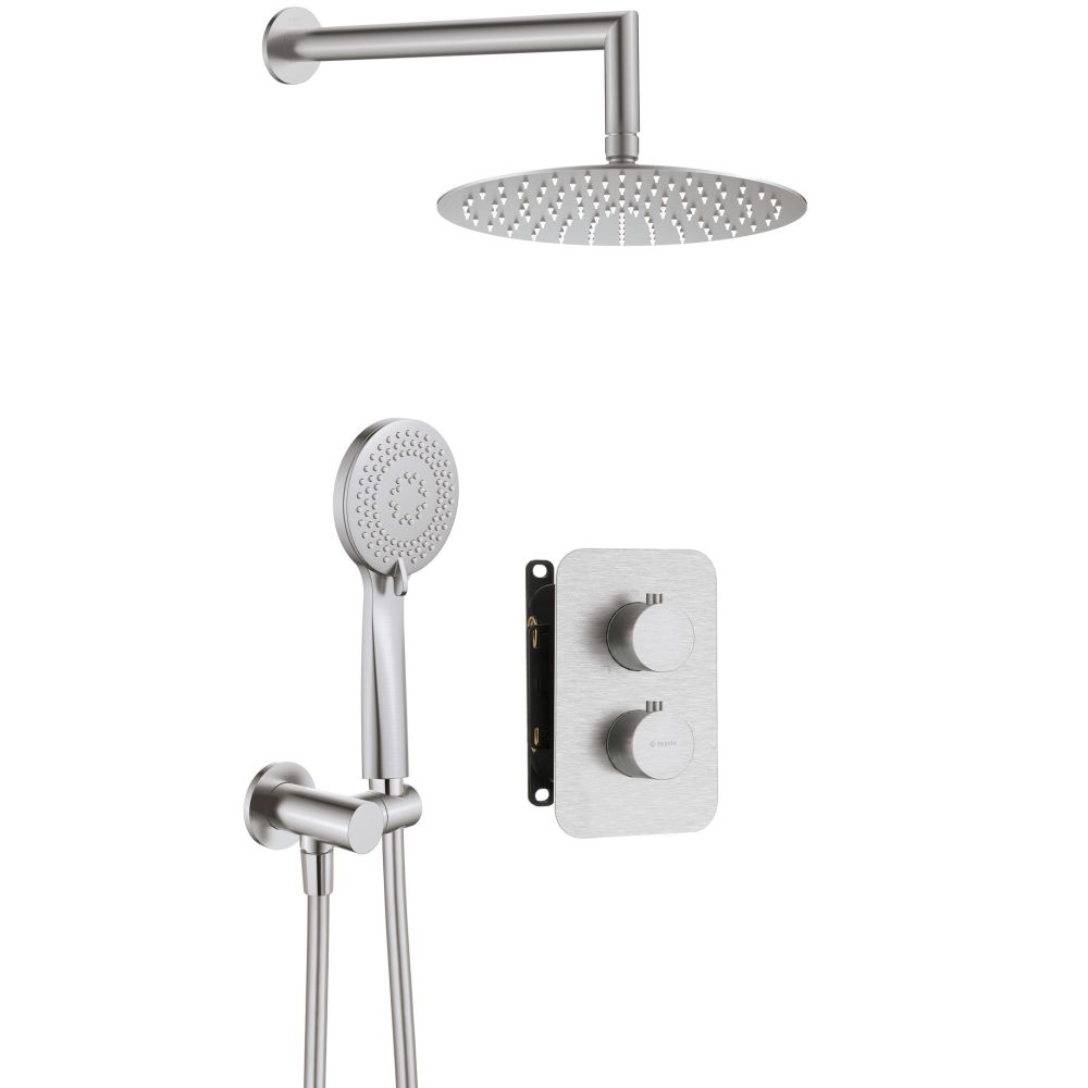 Concealed shower set THERM, with thermostatic box, Brushed steel