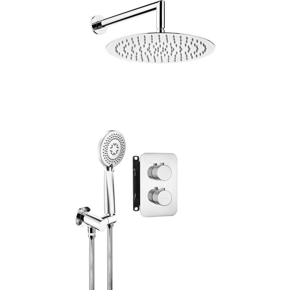 Rain shower set with top, hand shower and thermostatic faucet