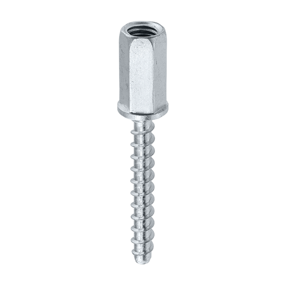 Concrete screw with internal metric thread with threaded shank for the installation of permanent and temporary fixings. It is made of carbon steel and covered with a layer of galvanic zinc, which provides anti-corrosion protection. The screw is intended for installation of temporary fixings on site, suspended fixings, serial fixings (pipelines, ventilation ducts, mounting rails, consoles), assembly of light and medium steel structures.