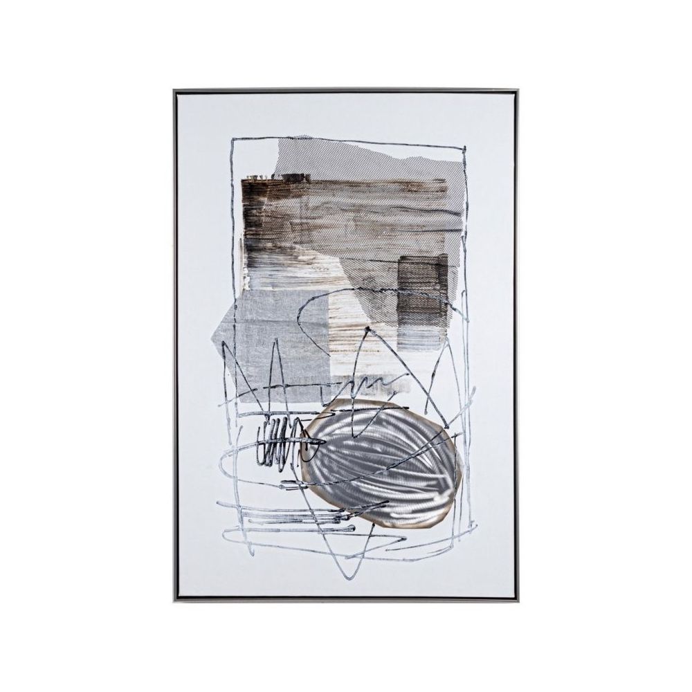 PAINTING ON CANVAS WITH METAL ELEMENTS, FIR WOOD STRUCTURE. PLASTIC FRAME.