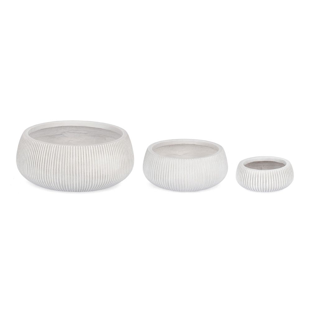 Decorative pot 3 pcs. RIBBED 22x9/32x13/43x18 cm. white