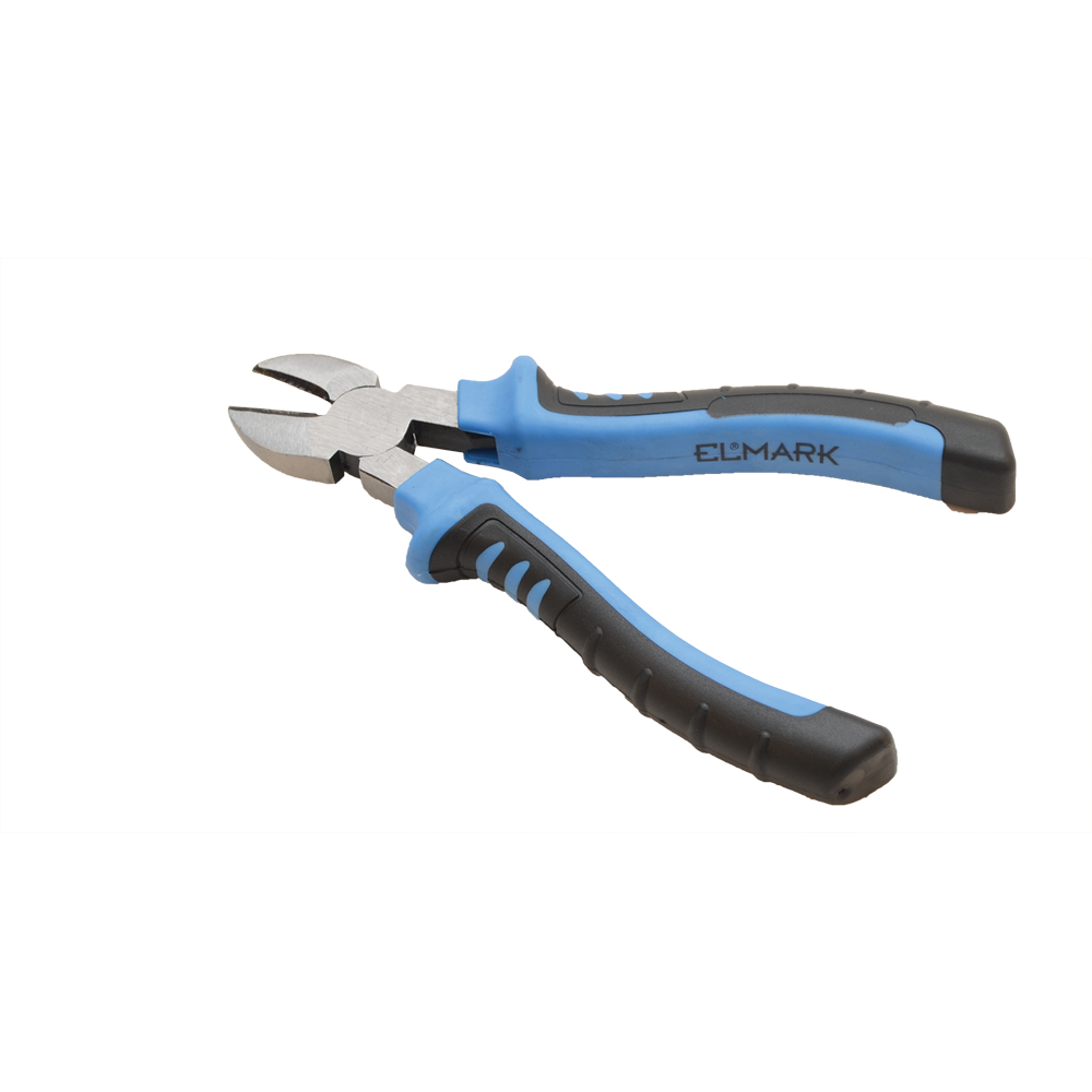 180mm diagonal side cutting pliers made of chrome vanadium steel and TPE material, providing comfort and strength. Ideal for cutting wires and cables, offering precision and ease of use.