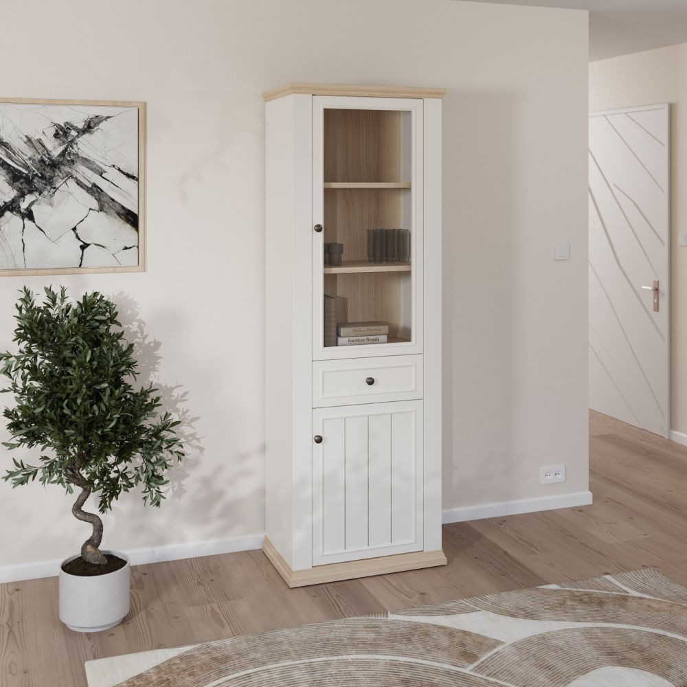 Display cabinet THIRTEEN, 200 cm, White/Riva Oak