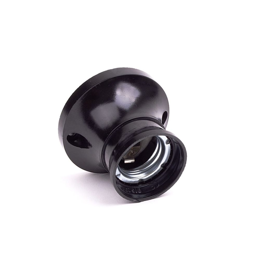 E27 Lamp Holder NC, Wall-Mount Straight, Black, 4A, 250V, 200°C