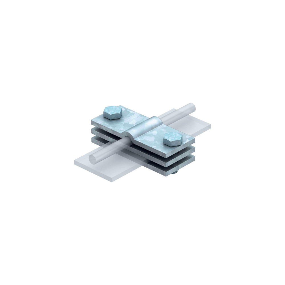 For round conductor and flat strips. Suitable for cable 50 mm2 and strips with width 40 mm. With 2 hexagonal bolts M6x20 mm.