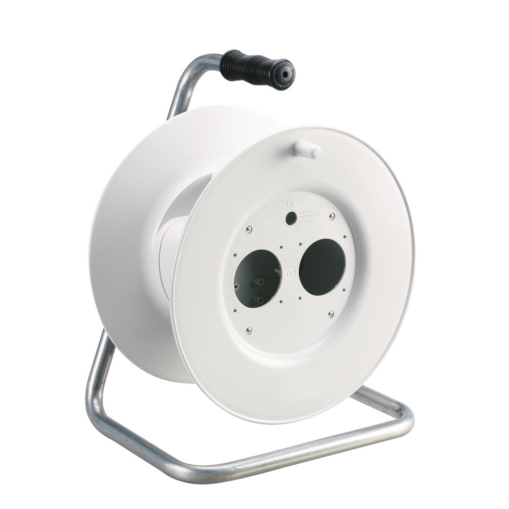 MAIN TECHNICAL FEATURES • With galvanized and painted metallic support • Drum with internal automatic brake system and cable blocking clamp • Equiped with handle for rewinding • Colour: Grey RAL 7035