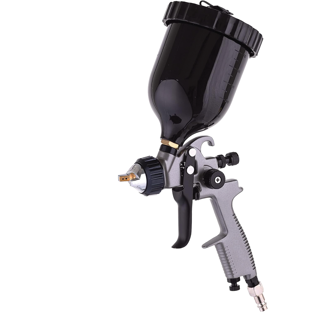 High Volume Low Pressure: Uses a high volume of air, but at a low pressure — which allows the gun to turn paint, stain, varnish, or lacquer into a very fine mist.
