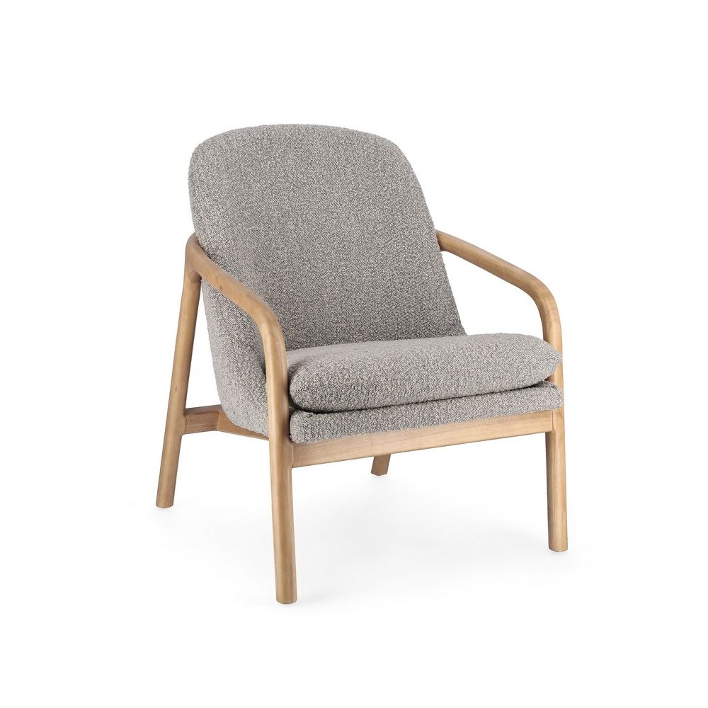 FRAME IN RUBBERWOOD. SEAT IN PINE WOOD AND PLYWOOD. POLYESTER COVER WITH BOUCLE' EFFECT. DENSITY OF POLYURETHANE FOAM FILLING 24 KG/M3. SEAT CUSHION WITH REMOVABLE COVER.