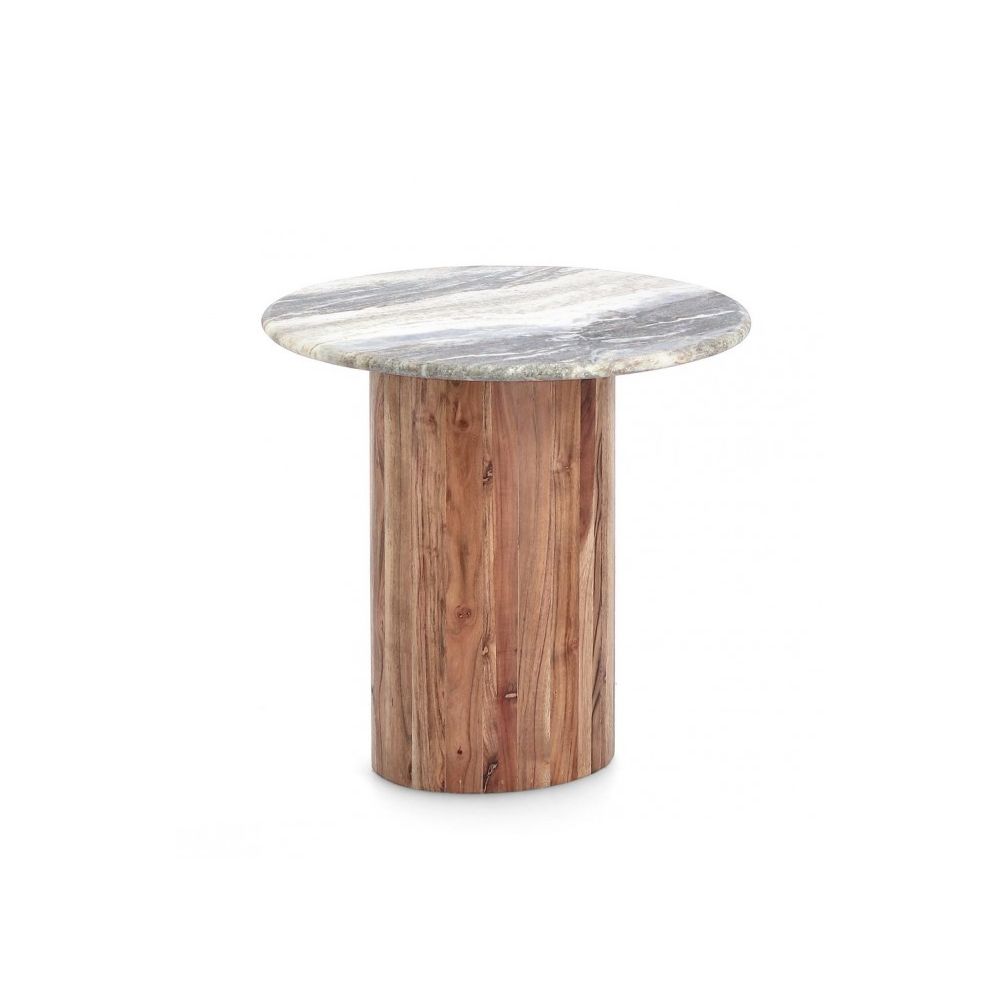 MARBLE TOP, NATURAL. BASE IN ACACIA WOOD, NATURAL FINISH. BASE TO BE ASSEMBLED.