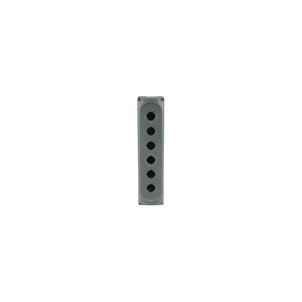 MEP6-0 Enclosure issix seats empty grey pastic enclosure This enclosure can fit both modular and compact range. Modular range can be with the unique possibility to mount up to 5 contact blocks assigned to one operator. Degree of protection: IP66 UL/NEMAtype 1, 3R, 4, 4X, 12, 13