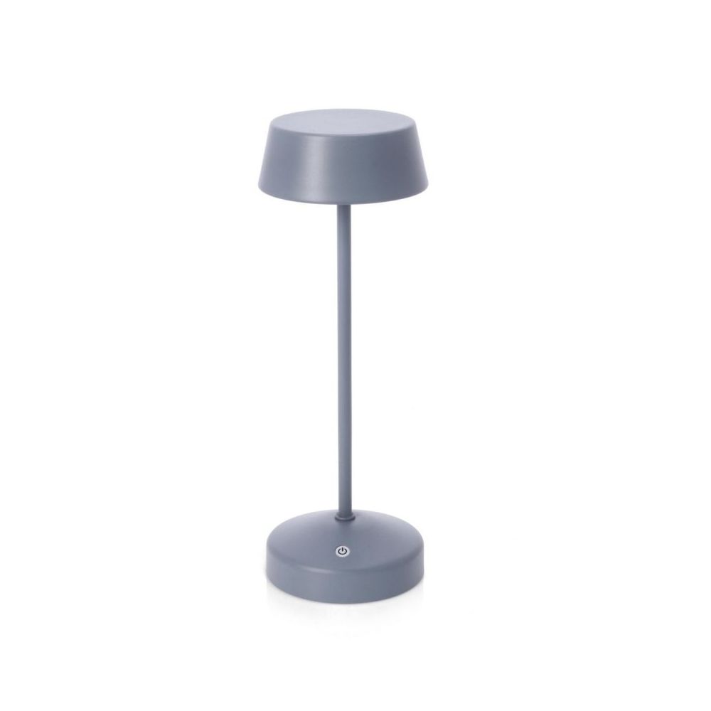 EPOXY POWDER COATED METAL, PLASTIC. LED LAMP, 6 COLD LIGHT LEDS AND 6 WARM LIGHT LEDS, DIMMABLE LIGHT, RECHARGEABLE BATTERY WITH BLACK PLASTIC CHARGING BASE AND BLACK USB CABLE 0.8 MT INCLUDED. ON/OFF TOUCH BUTTON. FOR INDOOR AND OUTDOOR USE, IP54.