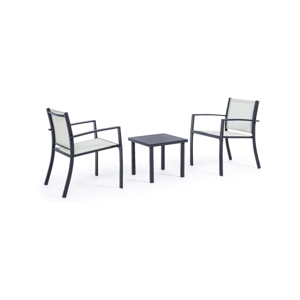 A comfortable set, thanks to the textilene seat of the chairs and functional, thanks to the practical table perfect for placing anything, ideal for enjoying delicious aperitifs in the company of friends and relatives in your outdoor space.