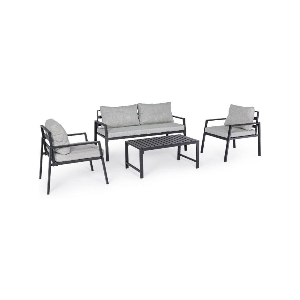 Lorilland New by Bizzotto Yes is a garden lounge with a modern design , consisting of a sofa, two armchairs and a coffee table.