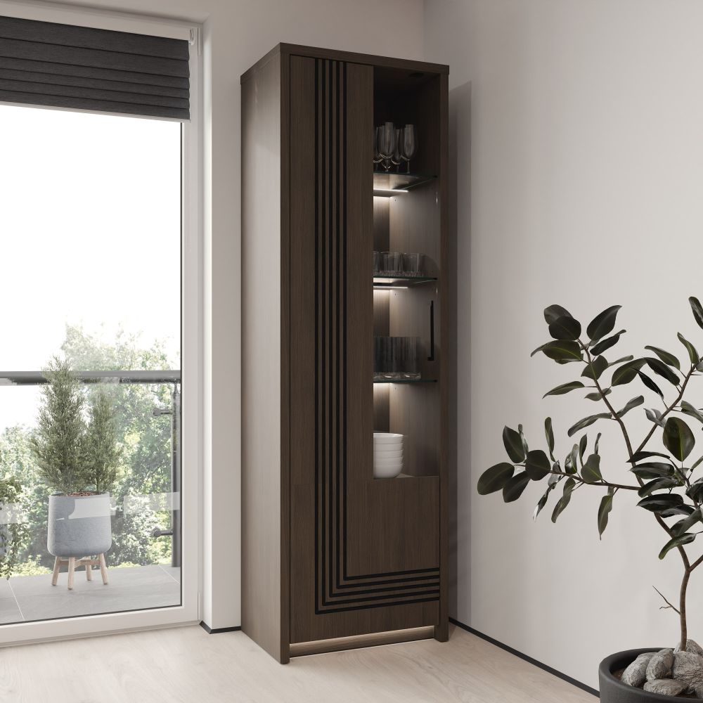 Glass high unit SEVEN 60 cm, Masurian oak, LED lighting