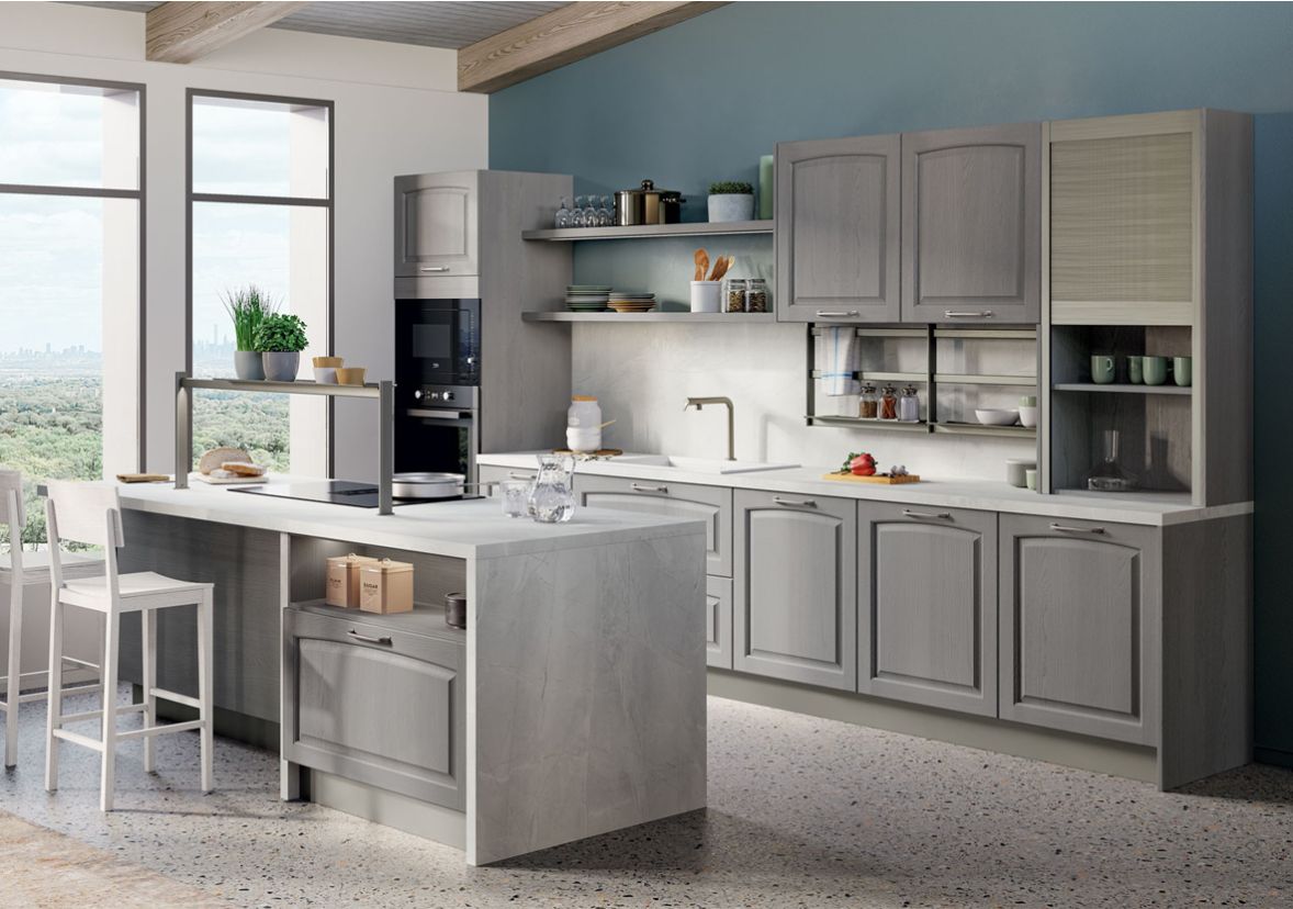 Рамка като на врата от масивна дървесина (E1 и US EPA TSCA Title VI съвместима) с решетка с никел-месинг, 4 mm дебелина на екстра-прозрачно или сатенирано закалено стъкло. Цветовете са същите като вратите.