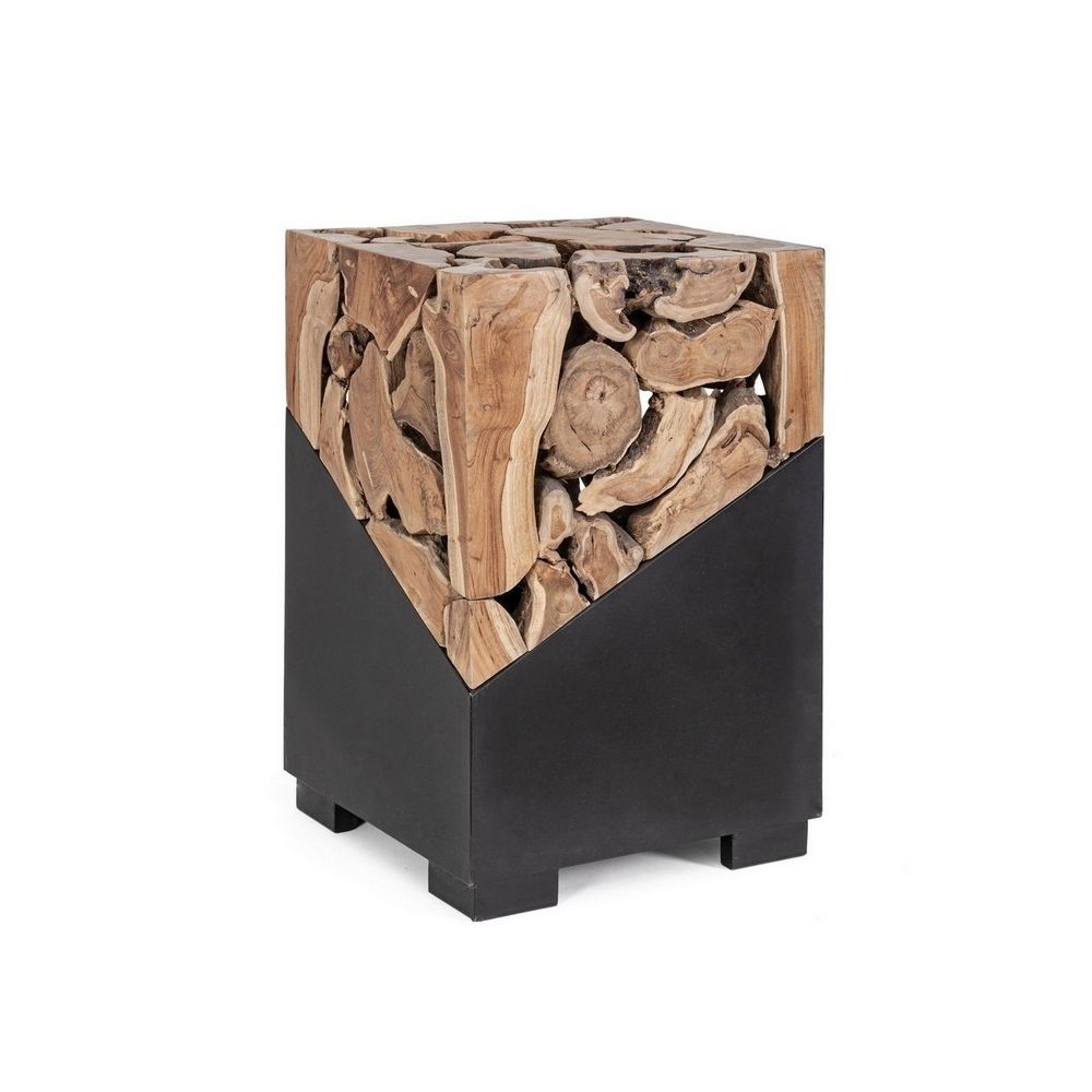 TOP IN TEAK ROOTS WITH WATER BASE FINISH, STEEL BASE EPOXY POWDER COATED. THE SHAPES FORMED BY THE WOOD ARE ONLY INDICATIVE, ALL THE ITEMS WILL BE DIFFERENT FROM EACH OTHER.