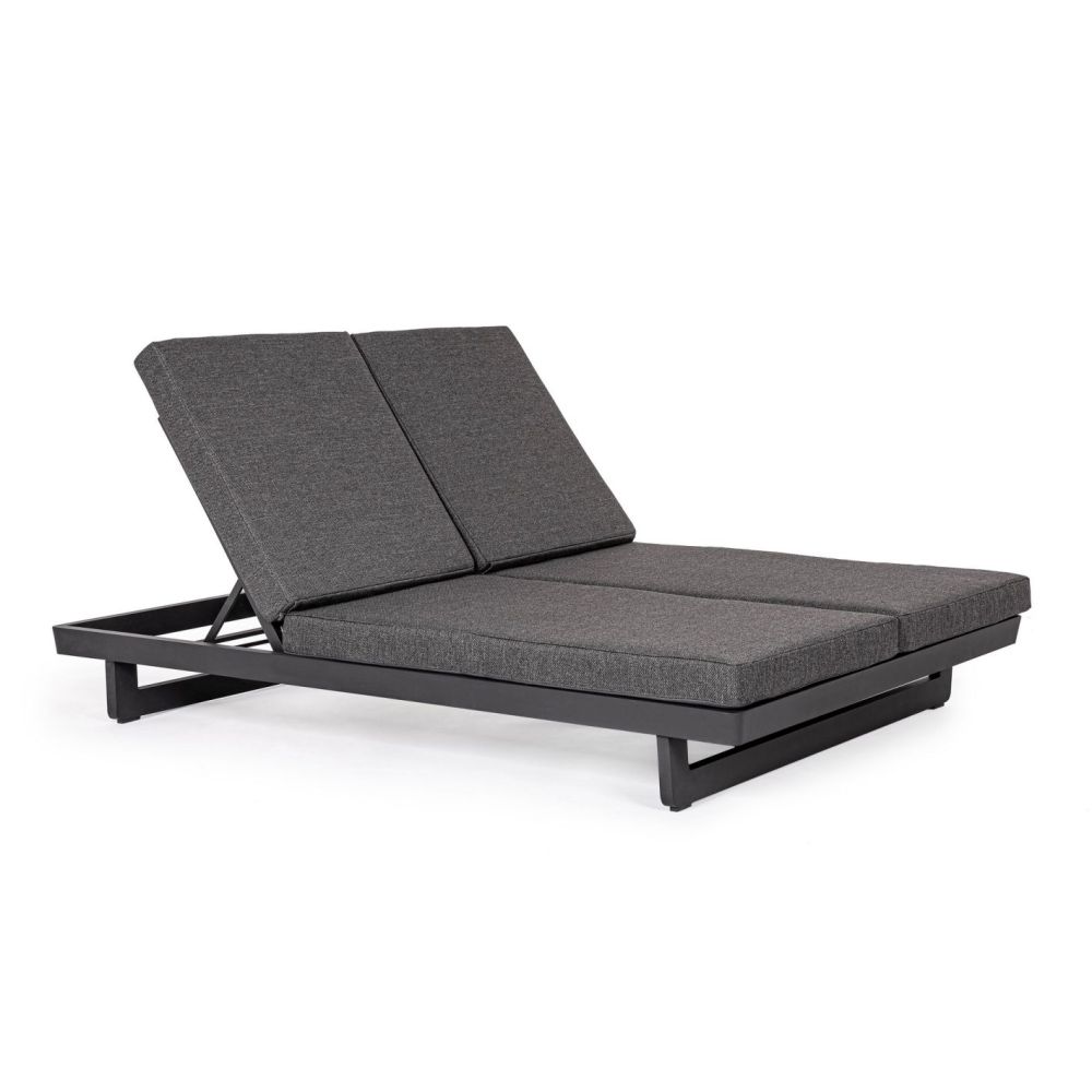 ALUMINIUM FRAME, POWDER COATED (POLYESTER). CUSHION WITH REMOVABLE COVER IN WATER REPELLENT OLEFIN FABRIC (100% POLYPROPYLENE). RECLINING BACK (5 POSITIONS). ALUMINIUM WHEELS RUBBER COATED.