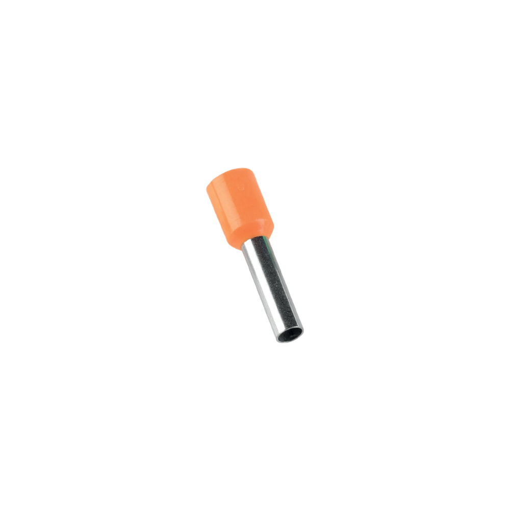 They represent a cable terminal made of brass alloy with galvanic tin coating and insulated with polyvinylchloride. They are used as non-insulated termnals, as the insulated part protects the cores from bending and breaking in the joining point and at the same time it protects the staff from direct contact to the current-carrying parts. The connection is realized through crimping pliers, through mechanic pressing of the terminal and conductor.