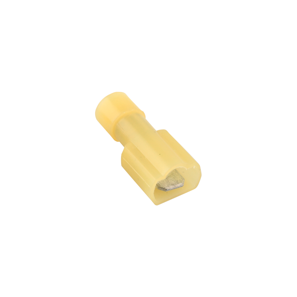 They represent a cable terminal made of brass alloy with galvanic tin coating and insulated with polyvinylchloride. They are used as non-insulated termnals, as the insulated part protects the cores from bending and breaking in the joining point and at the same time it protects the staff from direct contact to the current-carrying parts. The connection is realized through crimping pliers, through mechanic pressing of the terminal and conductor.