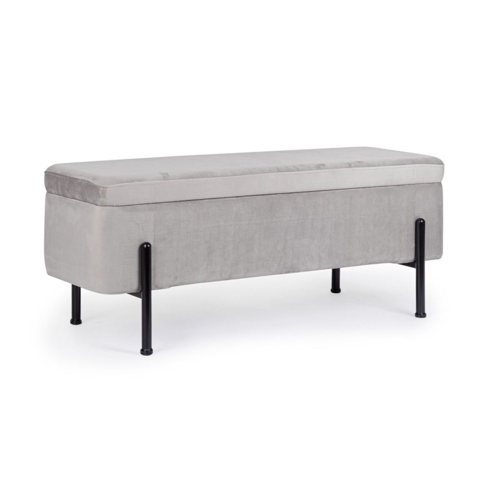 MDF AND PLYWOOD FRAME. STEEL LEGS WITH BLACK PAINTING. COVER IN POLYESTER WITH VELVET EFFECT. LEGS TO BE ASSEMBLED.