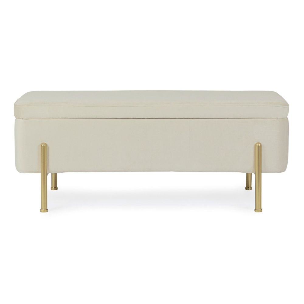 MDF AND PLYWOOD FRAME. STEEL LEGS WITH GOLD PAINTING. COVER IN POLYESTER WITH VELVET EFFECT. LEGS TO BE ASSEMBLED.