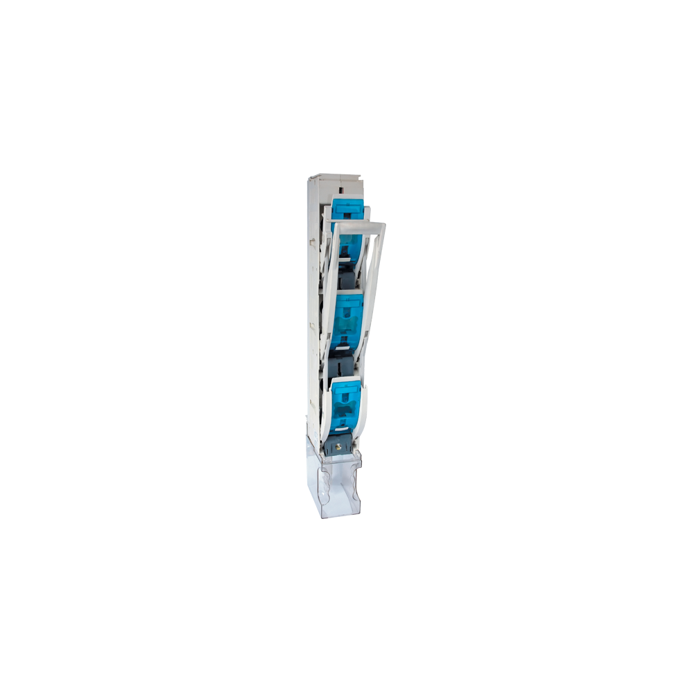 Isolating switches, also known as disconnect switches or load break switches, are devices commonly used in conjunction with fuse links to provide additional safety and convenience when working with electrical circuits. These switches are designed to physically open or close a circuit, allowing for isolation of equipment, maintenance, and safe handling of fuses or other components. When a fuse link needs to be replaced due to a blown fuse or maintenance, isolating switches can be used to disconnect the circuit from the power source before accessing the fuse holder or base. This ensures the safety of personnel and prevents arc flash hazards. Designed in two types ヨ horizontal and vertical. They represent a combination of low voltage iso_x0002_lating switch and high power safety devices mounted in a common plastic corpus. They are used for low voltage distribution boards and complete transformer substations (CTS) where visible circuit distribution is necessary. They provide safety and convenience at fuse links change. The plastic corpus increases the IP code and the plastic lid provides simultaneous circuits switching on/off. The lid allows easy removing which is additional measure at repairs. The vertical isolat_x0002_ing switches are mounted directly to the power supply rails which enables the exploitation and improves the safety of the staff.