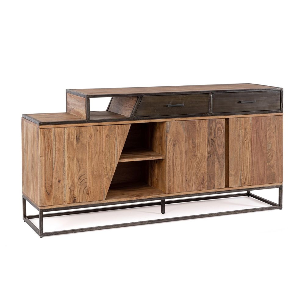 ACACIA WOOD AND STEEL FRAME EPOXY POWDER COATED, BACK IN PLYWOOD. PROTECTIVE ACRYLIC FINISHING. STEEL HANDLES AND DRAWERS. COMPARTMENT WITH SHELF.