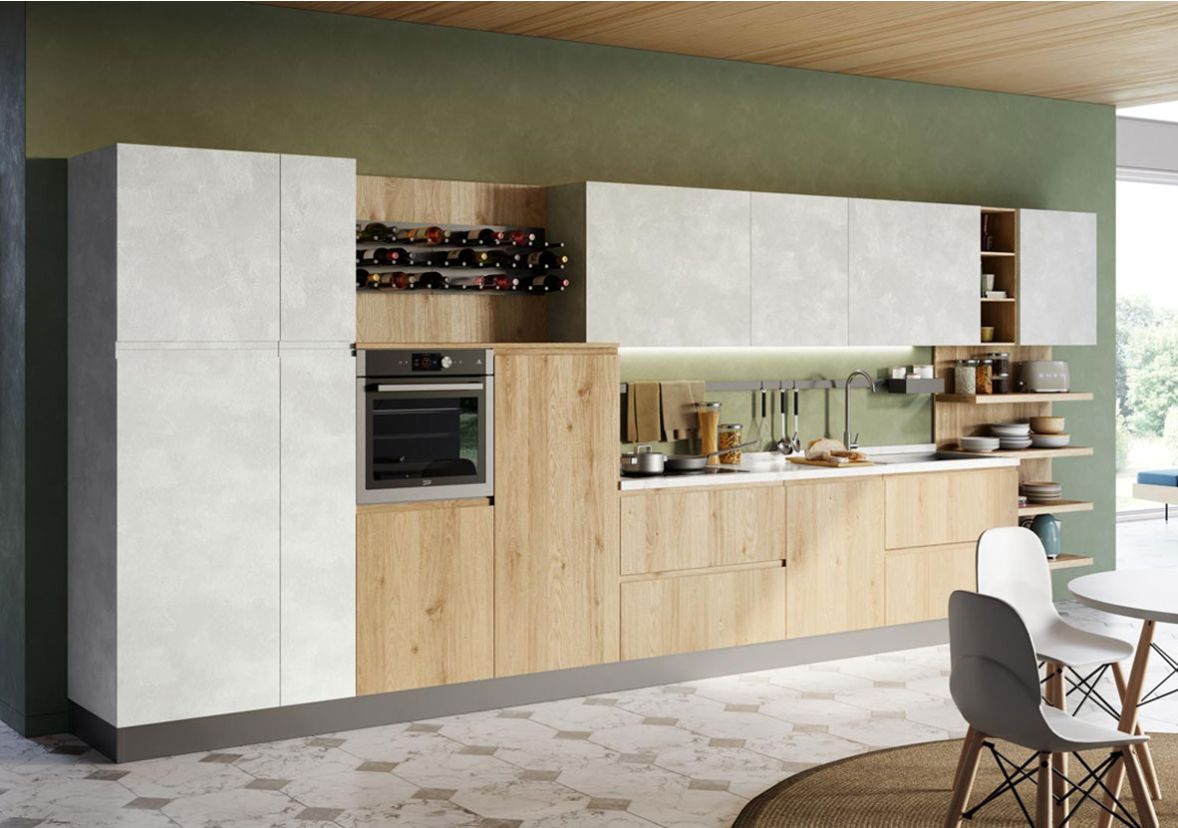 Врата, състояща се от опора от ПДЧ панел (клас Е1), дебелина 22 мм, с меламиново покритие в цвят, камък или дървесен ефект, обшит от 4 страни с ABS кант с дебелина 1 мм, в подходящ дървесен ефект. Всичко залепено с полиуретаново лепило.