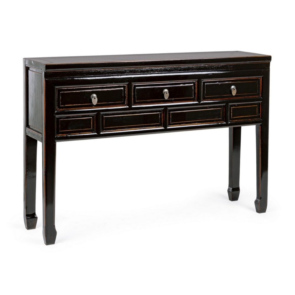 FRAME IN RECYCLED ELM WOOD. BACK AND INTERNAL PANELS IN PLYWOOD. SHINY AND LACQUERED FINISHING WITH WATER BASE PAINT. COPPER HANDLES.