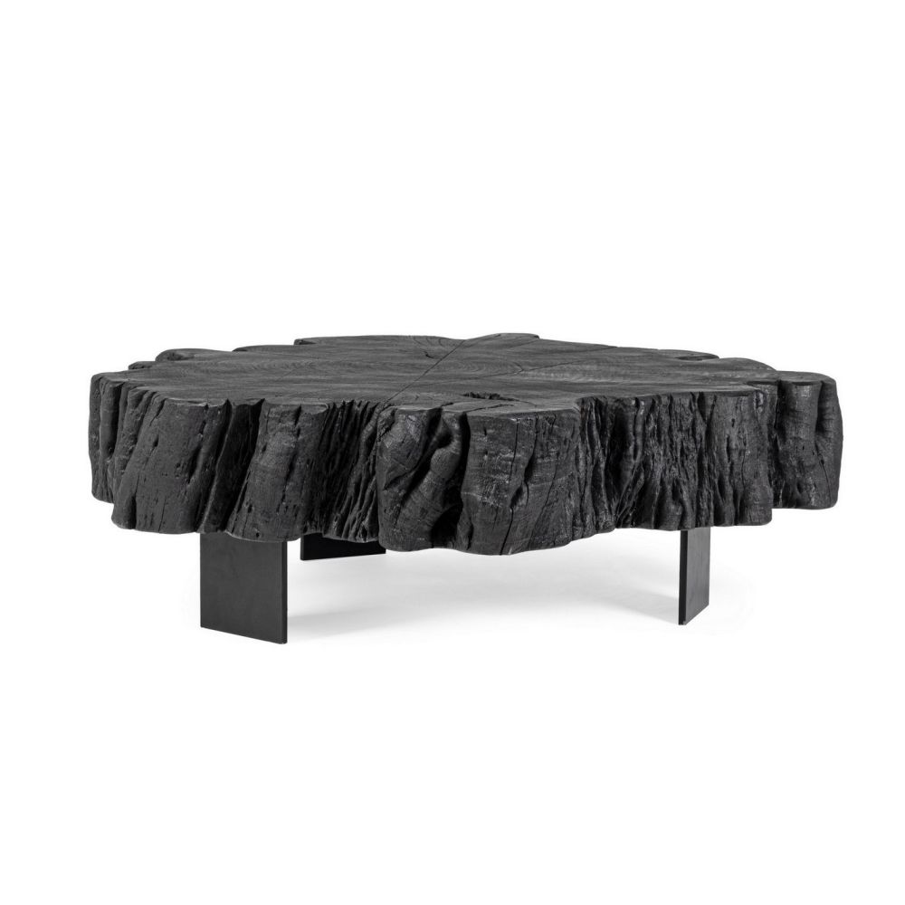 TOP IN ACACIA WOOD (ORIGINAL SECTION OF TRUNK), POLYURETHANE PAINT FINISHING. STEEL LEGS EPOXY POWDER COATED. THE SHAPES AND SIZES FORMED BY THE WOOD ARE ONLY INDICATIVE, ALL THE ITEMS WILL BE DIFFERENT FROM EACH OTHER. LEGS TO BE ASSEMBLED.