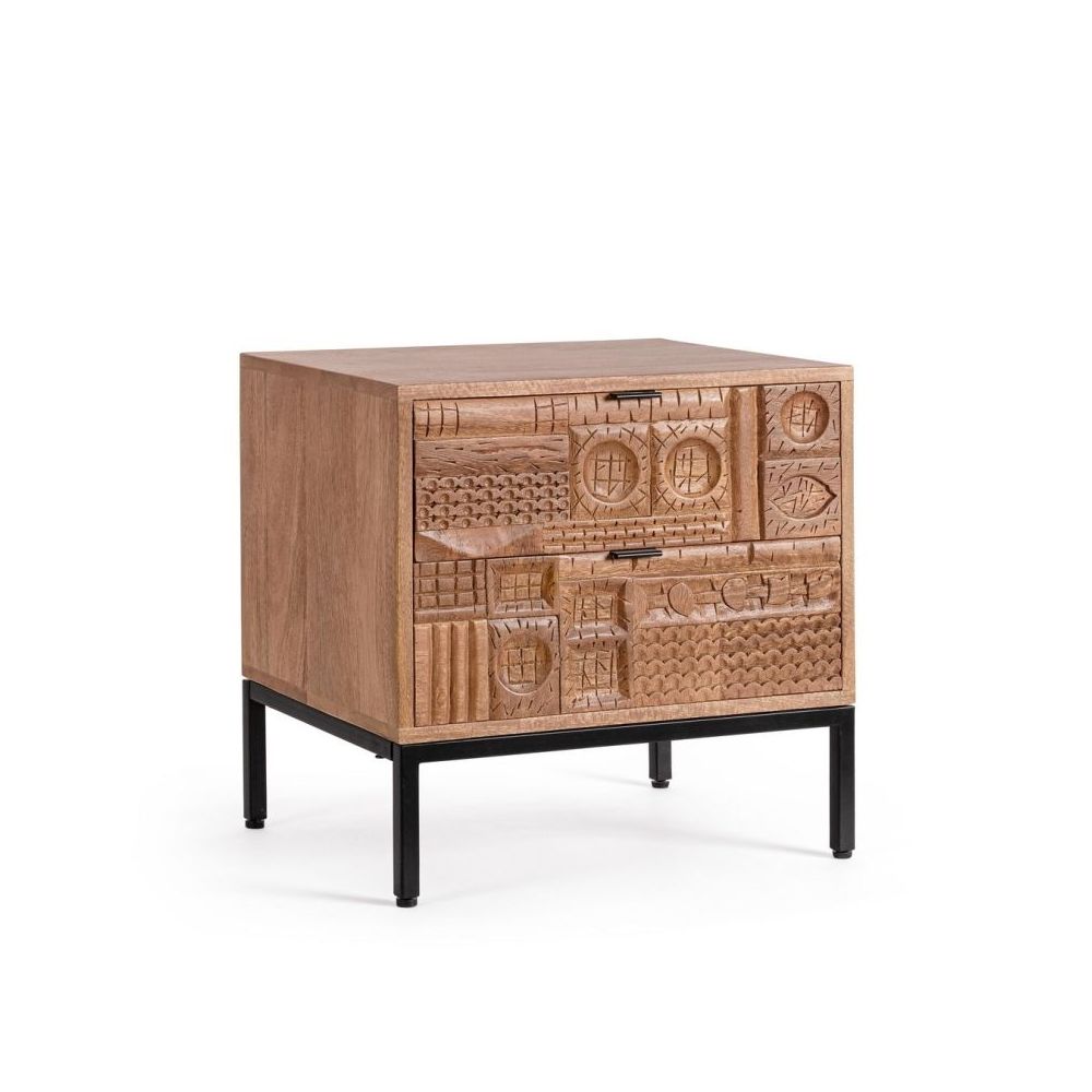 SOLID MANGO WOOD FRAME, MDF BACKREST. NITROCELLULOSE-BASED PAINT. STEEL LEGS AND HANDLES. FRONT DRAWERS AND DOORS INLAID AND HANDMADE. LEGS TO BE ASSEMBLED.