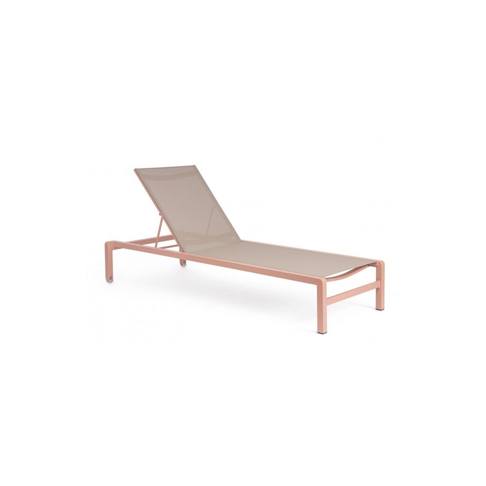 ALUMINIUM POWDER COATING FRAME (POLYESTER). SEAT AND BACK IN TEXTILENE 1X1. PLASTIC WHEELS AND STAINLESS STEEL SCREWS. RECLINING BACK (6 POSITIONS). STACKABLE.