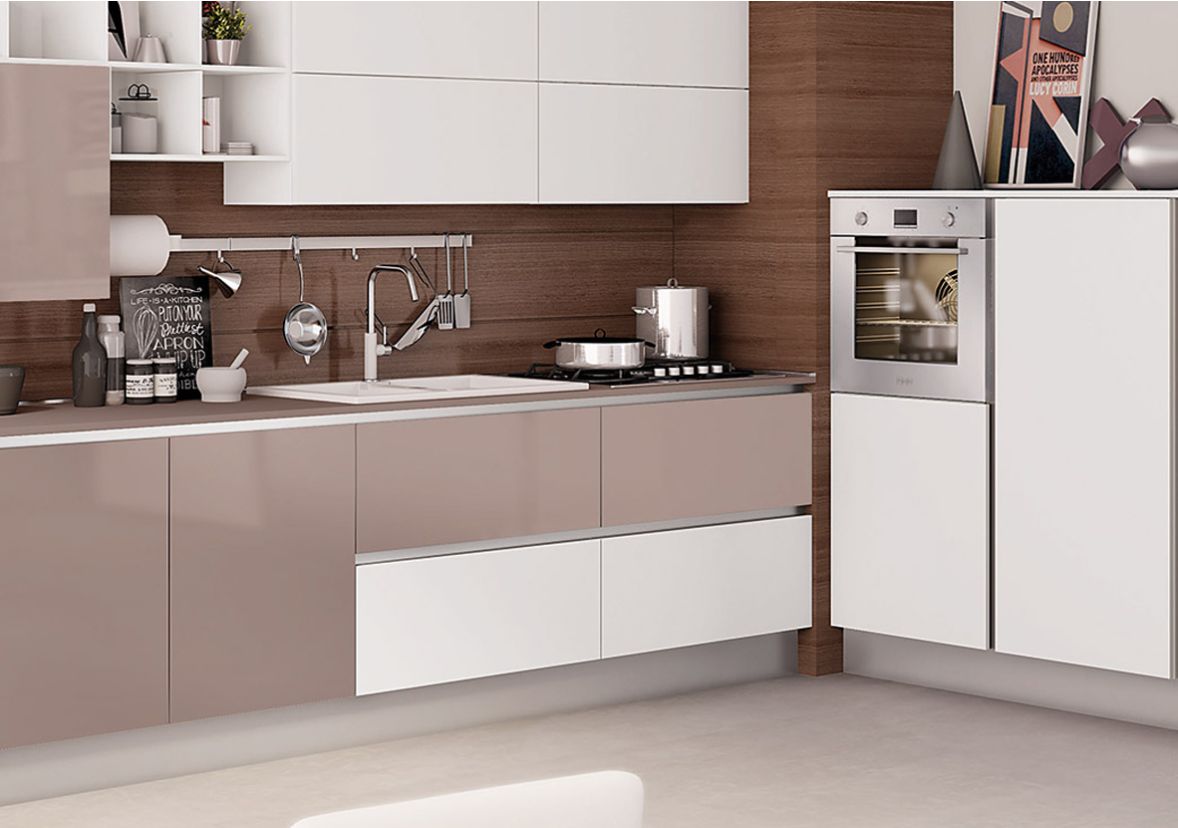Стъклени врати и дълбоки чела на чекмеджета (алуминиева рамка)