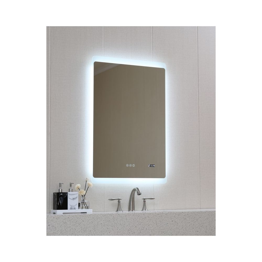 LED mirror 60x90cm, 3 colors, with anti-fog, bottom right corner with clock, round triple touch switch